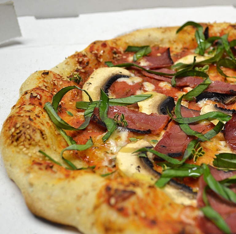 Bresaola, champignons, sauce tomate, mozzarella, basilic, sésame grillé.