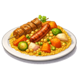 Plat du jour Vendredi 13 février - Couscous Légumes brochettes saucisses