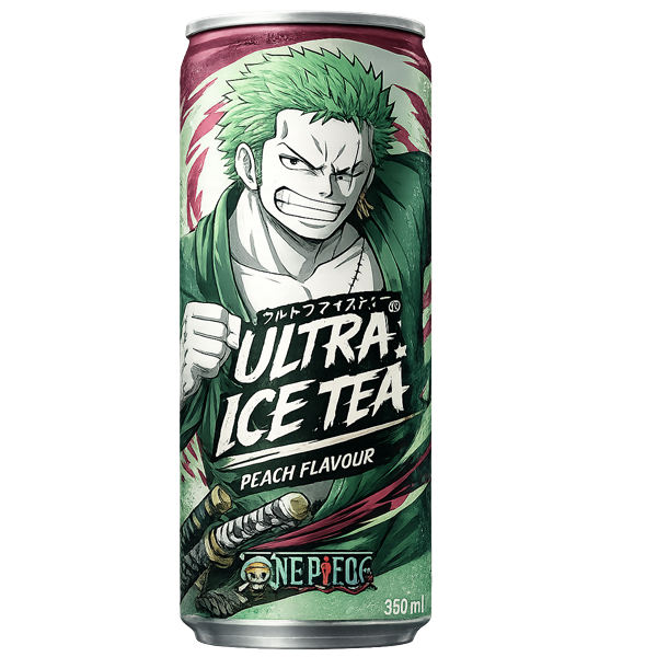Thé glacé Ultra goût pêche (Zoro – One Piece) 330 ml est une boisson non gazeuse associant saveur de thé et notes fruitées de pêche. Sans conservateurs, elle offre un goût doux et léger. Produit sous licence officielle inspiré du personnage Roronoa Zoro, idéal pour la dégustation ou la collection.